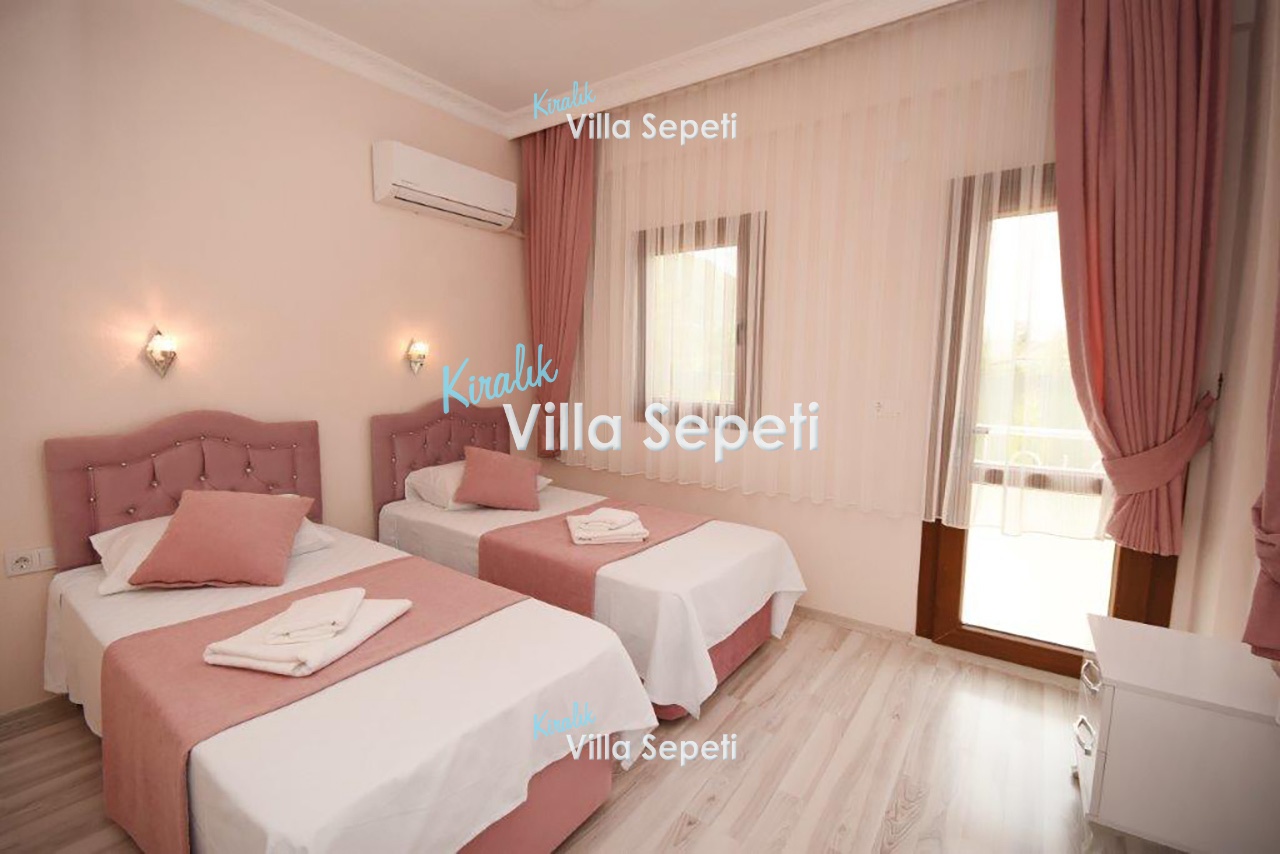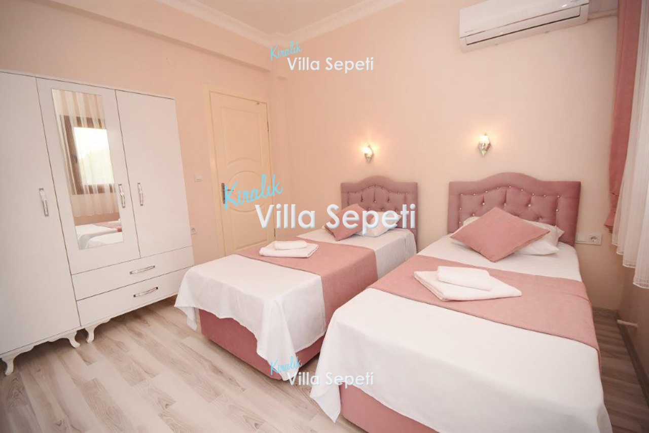 3. Yatak Odası: 2 adet tek kişilik yatak, elbise dolabı, makyaj masası, klima, ortak kullanım banyo ve tuvalet bulunur.