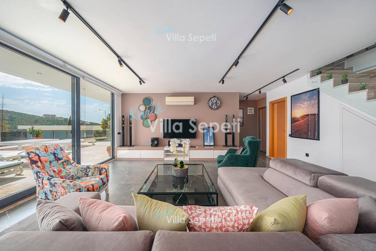 Deniz manzaralıdır (Havuz katında yer alır), modern oturma grubu, uydu alıcı, LCD Televizyon, DVD Oynatıcı, Ses Sistemi, klima, lavabo, ütü, ütü masası, elektrik süpürgesi, havuz kenarına çıkış, kablosuz modem, tuvalet ve lavabo yer almaktadır.