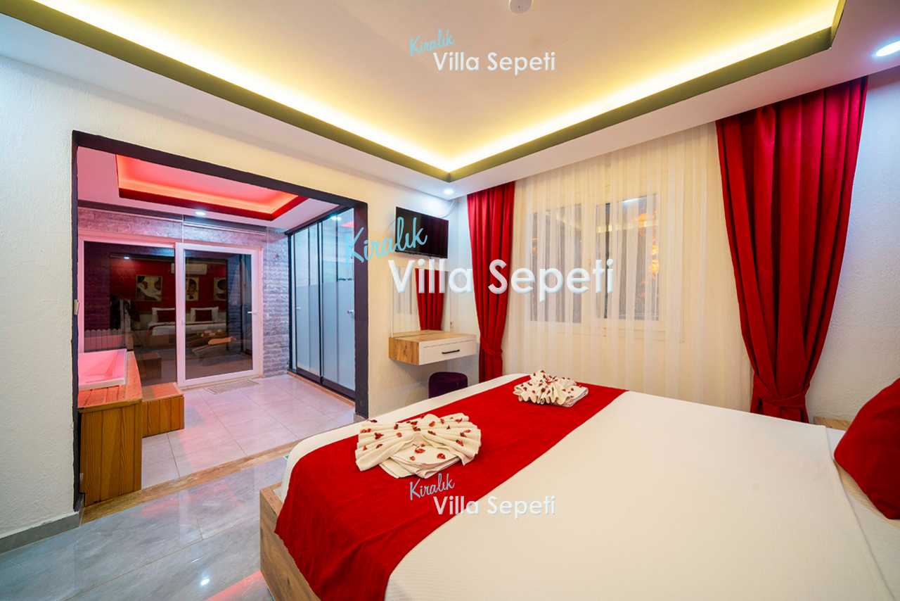 1. Yatak Odası: Suit odadır. 1 adet çift kişilik yatak, komodin, klima, elbise dolabı, makyaj rafı, jakuzi, banyo&Wc bulunmaktadır.