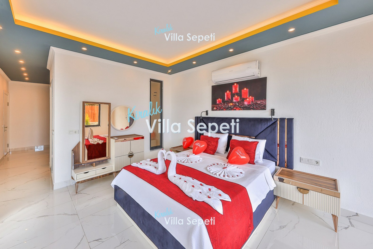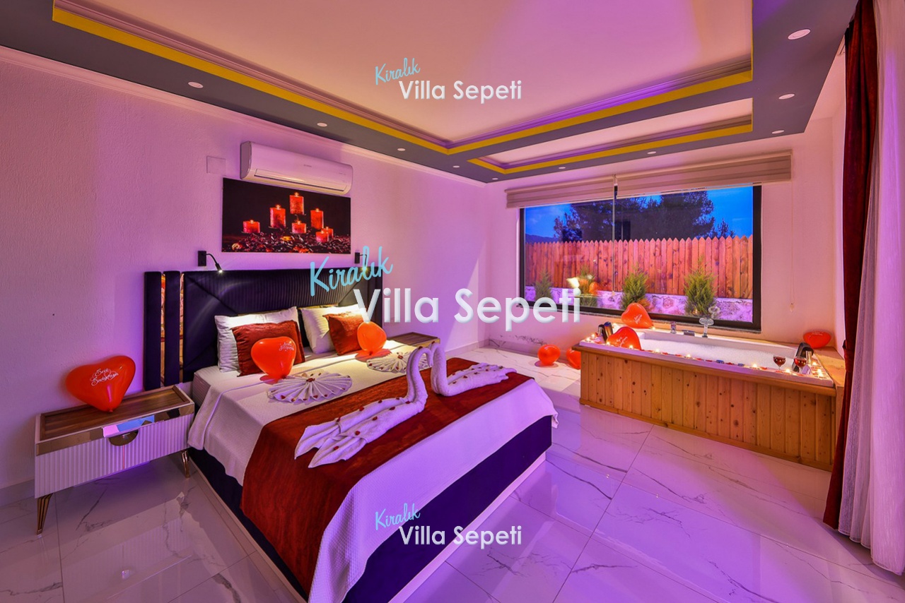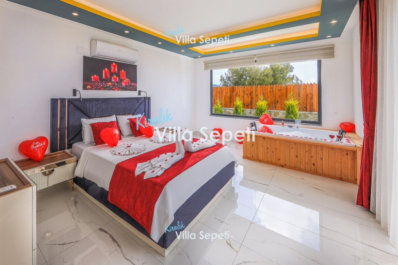 1. Yatak Odası: Suit oda, 1 adet çift kişilik yatak, jakuzi, elbise dolabı, klima, WC&banyo, havuz terasına doğrudan çıkış bulunur.