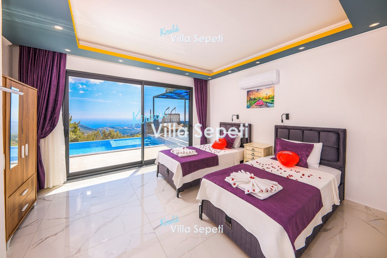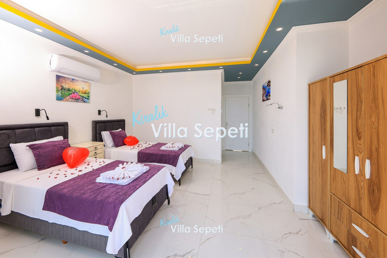 2. Yatak Odası: Suit oda, 2 adet tek kişilik yatak, elbise dolabı, klima, WC&banyo, havuz terasına doğrudan çıkış bulunur.