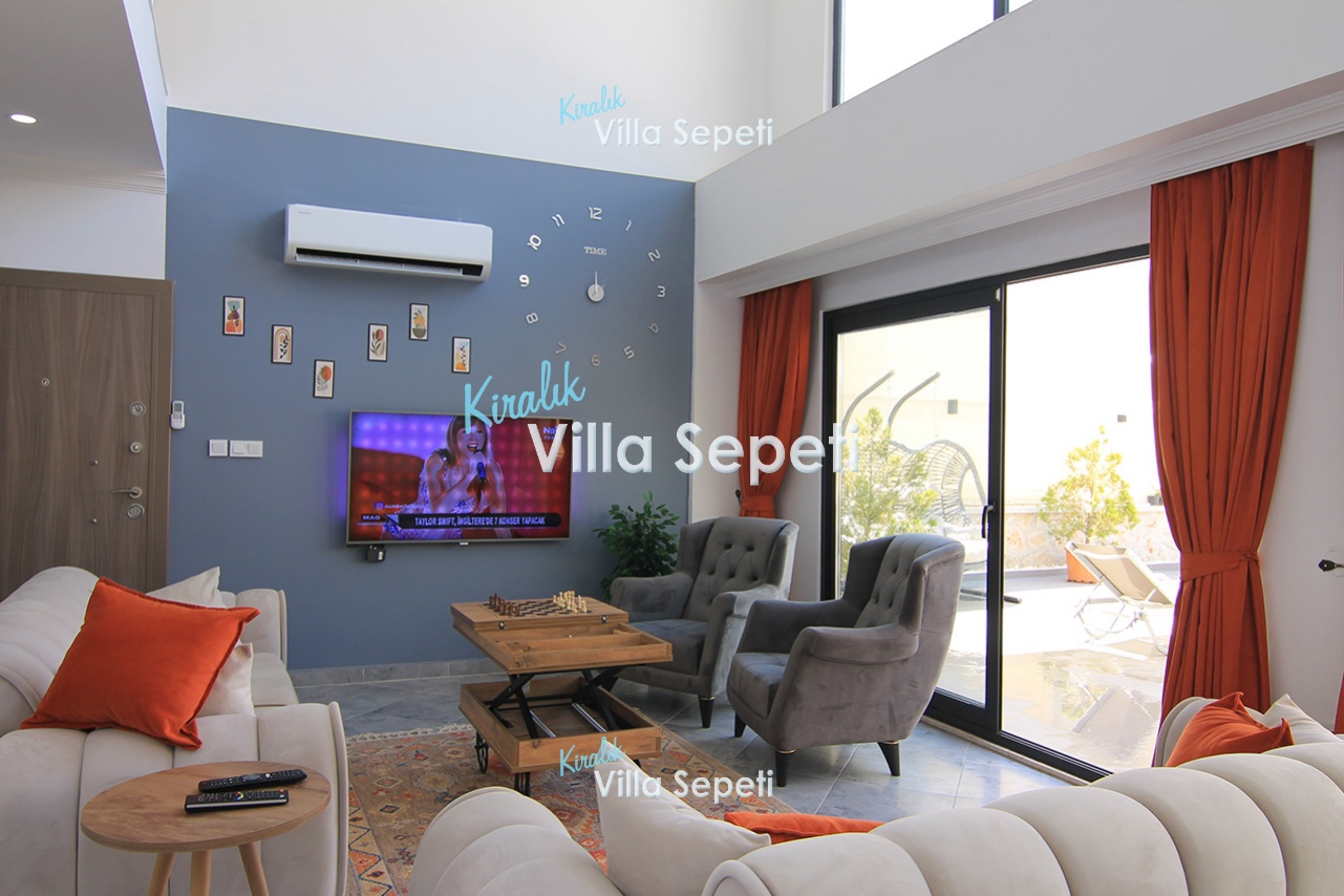 Rahat oturma grubu, LCD TV, WiFi, klima, uydu alıcı ve WC havuz terasına çıkış bulunur.