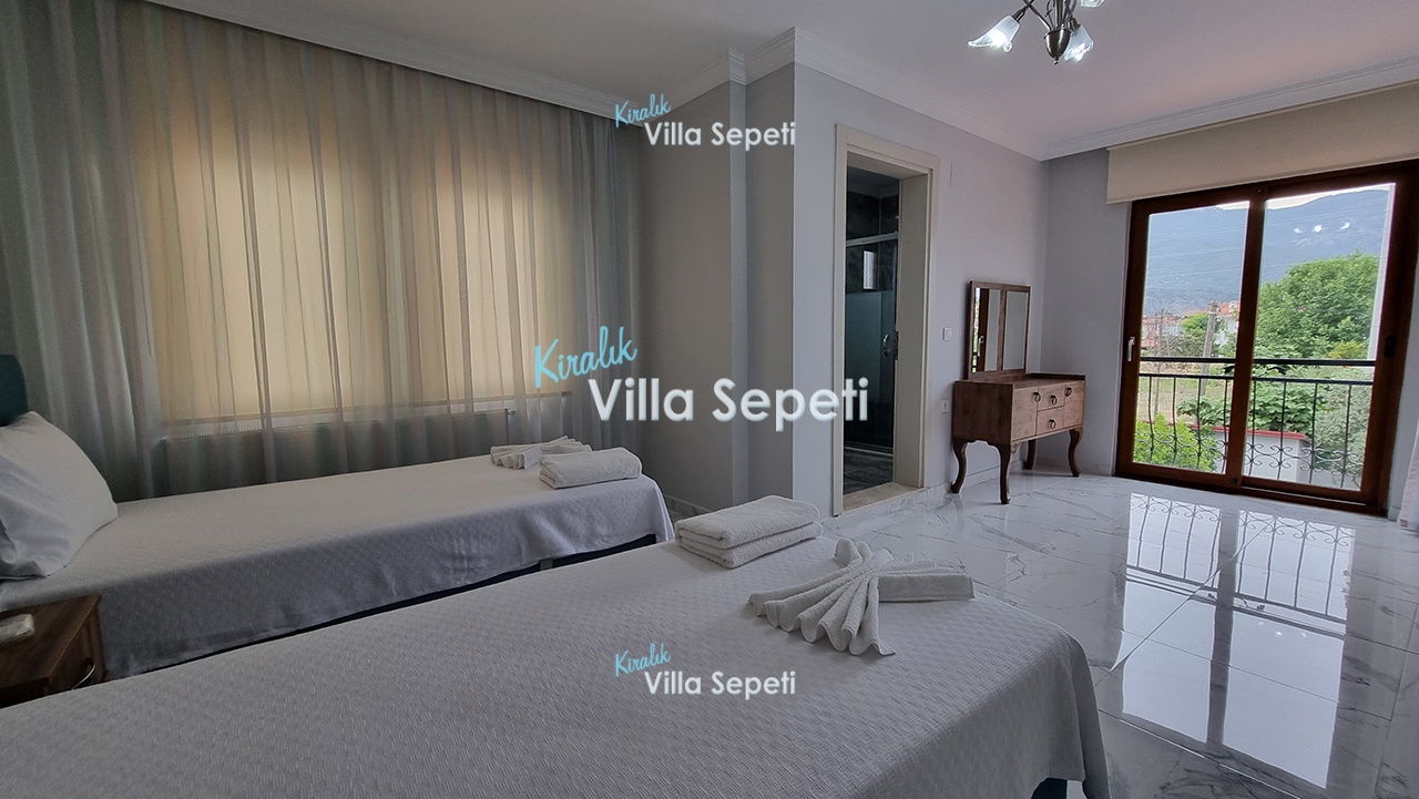 3. Yatak Odası: 2 adet tek kişilik yatak, komodin, elbise dolabı, klima, banyo&WC bulunur.