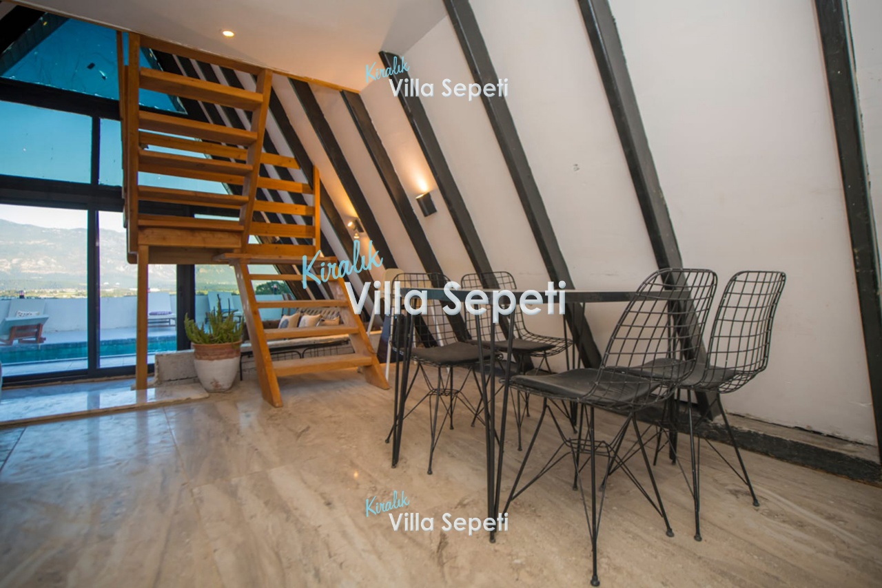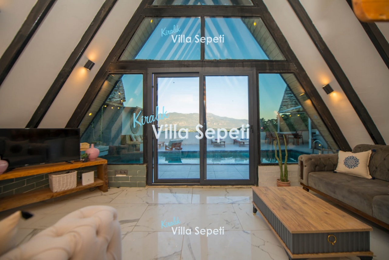 Rahat oturma grubu, klima, uydu alıcı, wifi, havuz terasına çıkış bulunur.