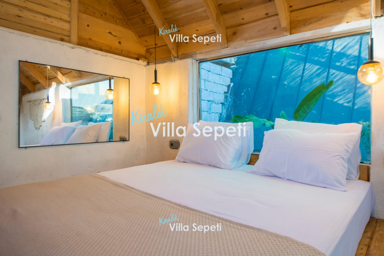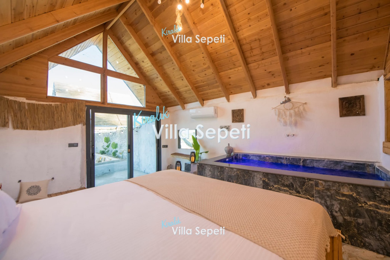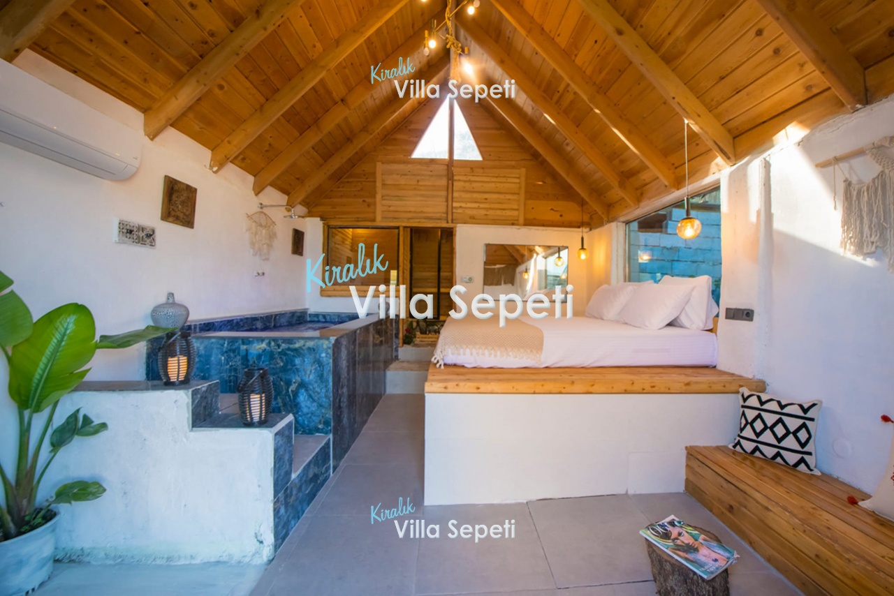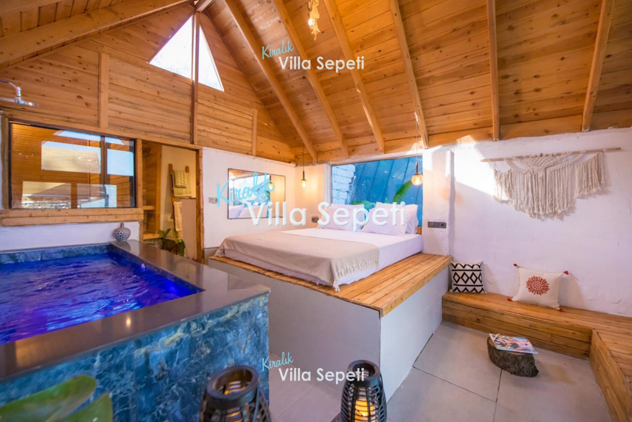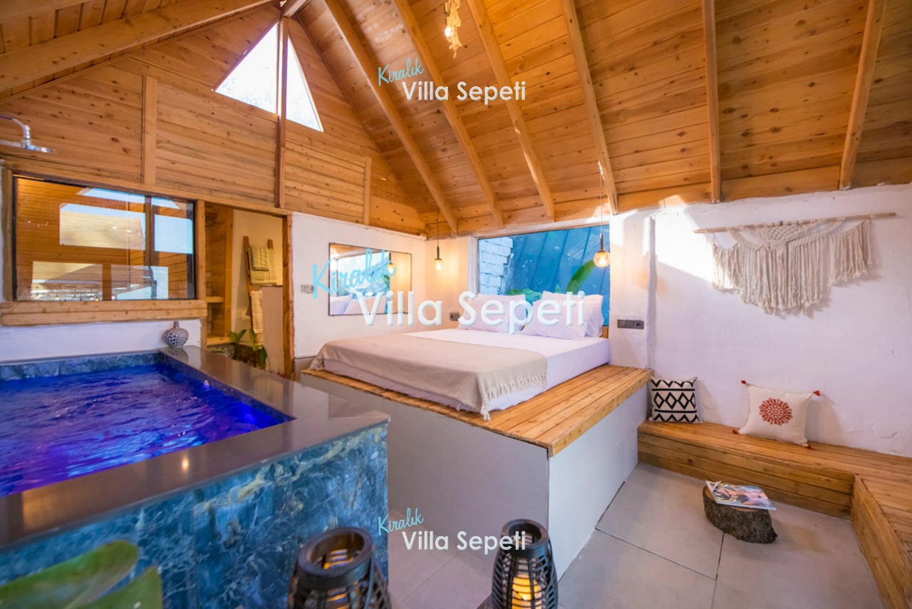 2. Yatak Odası: 2. yapıdadır. Suit odadır. 1 adet çift kişilik yatak, klima, komodin, jakuzi, koltuk, banyo&Wc, havuz terasına çıkış bulunur.